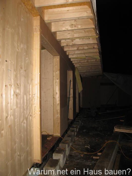 Heute wurde das Dach draufgelegt. Wie auf den Bildern zu erkennen ist, sieht das Haus damit schon wirklich fast wie ein Haus aus. Das Dach ist noch nicht fertig, es fehlt noch die Abdichtung, die äussere Isolierung und die Rollierung drauf. Leider ist es zeitlich ein wenig knapp geworden, weswegen die letzten Teile in leichtem Nieselregen aufgelegt werden mussten, und das bereits nach Einbruch der Dunkelheit. Aber die Hauptsache ist, dass der Zeitplan hält – ist wetterbedingt im Winter ja nicht so einfach. Natürlich gibt es auch davon ein Zeitraffervideo 🙂 Leider ist gegen Ende der Regenschutz ein wenig vor die Linse gerutscht, und ich weiss: insgesamt ist das Video am Ende zu Dunkel.
